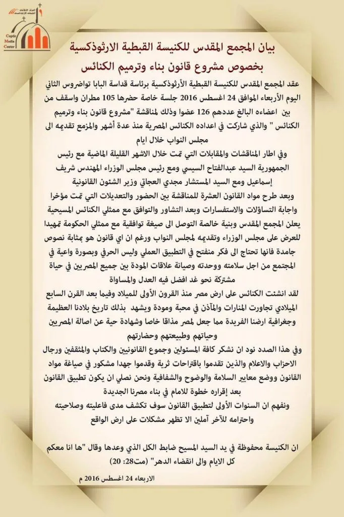 بيان-المجمع-المقدس-بخصوص-قانون-بناء-الكنا�...